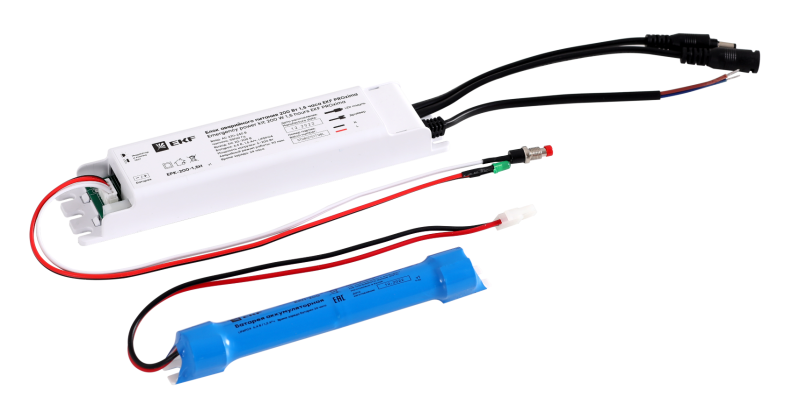 Блок аварийного питания совместим со встраиваемыми, накладными и потолочными светильниками мощностью до 200 Вт. Его можно устанавливать напрямую в светильник или вблизи от него в постоянном и непостоянном режиме. Время работы в аварийном режиме — 90 мин.