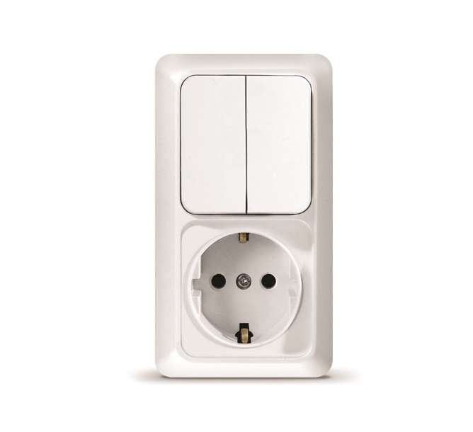 Корпус представляет собой форму из пластика, белого цвета. Контактная группа изделий изготовлена из латуни. Монтируется вертикально, на глубину 48 мм, на поверхность стены. Рекомендованы для жилых помещений и административных зданий.