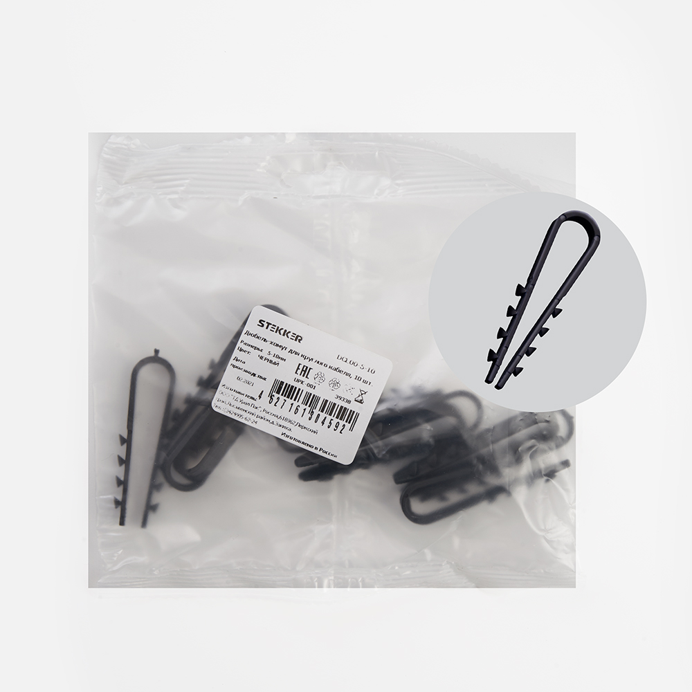 —Дюбель-хомут для круглого кабеля (5-10мм), STEKKER DCL00-5-10, полипропилен, белый, (DIY упаковка 10шт. 39338