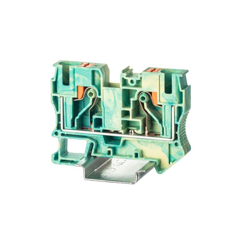 Желто-зеленый цвет, 2 точки подключения, 6 мм2. 2 канала для вставных перемычек. Габариты (В?Ш?Г) 44,1?57,7?8,2 мм.