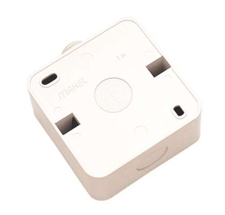 Монтажная коробка квадратной формы, изготовлена из пластика, белого цвета.