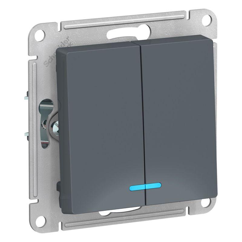 - Двухклавишный выключатель позволяет управлять двумя источниками света с одной точки.