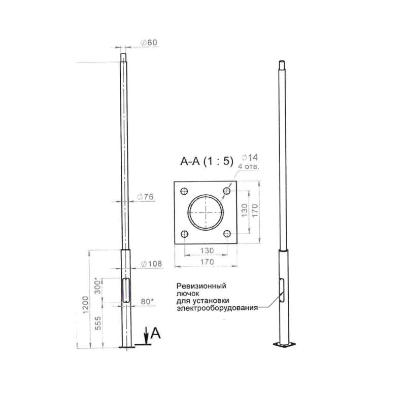 Диаметр верха столба, мм