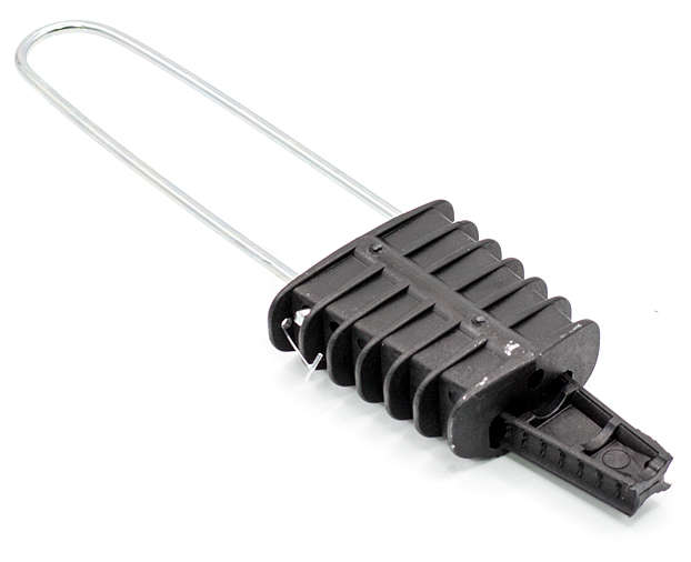 Зажим анкерный клиновой обеспечивает фиксацию проводника путем срабатывания простого призматического механизма, рабочие поверхности которого сходятся под острым углом. На опоре ЛЭП зажим фиксируется с помощью тросика.