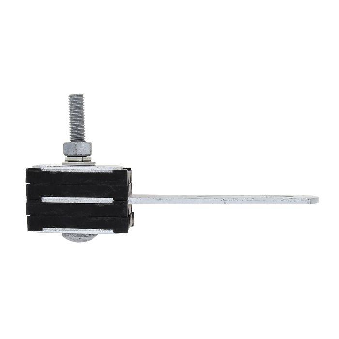 Зажим анкерный клиновой обеспечивает фиксацию проводника путем срабатывания простого призматического механизма, рабочие поверхности которого сходятся под острым углом. На опоре ЛЭП зажим фиксируется с помощью тросика.